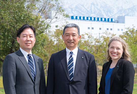 大谷 裕明 代表取缔役会长×筱田 芳夫 常务执行役员 管理本部 人事部长×Jessica Cork 常务执行役员 经营企划室 全球敬业度统括小组组长