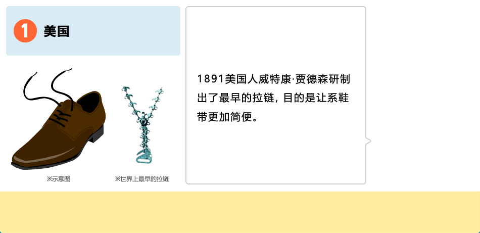 1891美国人威特康·贾德森研制出了最早的拉链,目的是让系鞋带更加简便。