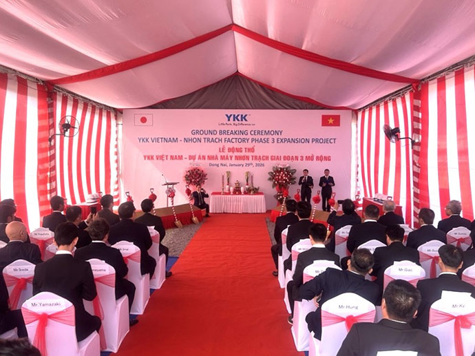 YKK Corporation (Headquarters: Chiyoda-ku, Tokyo; President: Koichi Matsushima; hereafter, YKK) held a groundbreaking ceremony on January 29 for the Phase 3 expansion of YKK Vietnam Co., Ltd.’s Nhon Trach Factory.