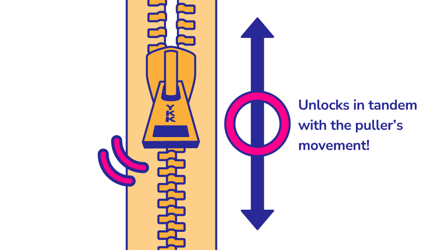 Originally, zippers did not have a locking function. However, when wearing clothes, the slider could gradually slip down due to gravity as you move, causing the zipper to open unintentionally-which is inconvenient. To prevent this, zippers with a “locking function” were developed.