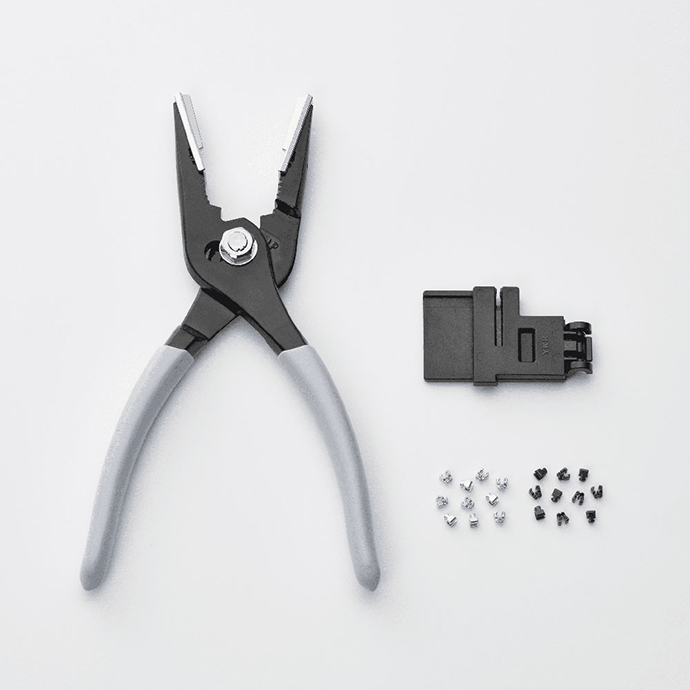 VISLON® 用リペア対応エレメントは、VISLON® ファスナーのエレメントが取れてしまった時に、専用の工具を使用してダイキャスト製のエレメントを取り付けることで、ファスナーの修理を可能にする商品です。専用の工具を共に提供することで、各ブランドのリペアセンター等での修理が容易になりました。従来のような、製品をファスナーからほどいて新しいファスナーに交換する修理に対して、破損したエレメント部分のみの修理対応を可能にし、修理にかかる時間を大幅に削減できます。