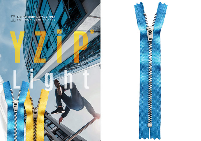 コットンパンツ向けアルミ合金ファスナーYZiP® Light販売開始 ~YKK独自の新アルミ成型技術を用いて強度向上、YZiP® より50%の軽量化実現~