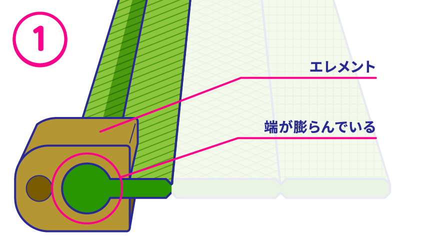 エレメントと接するところは、しっかり取り付けられるように端の部分が紐のようにふくらんでいます。